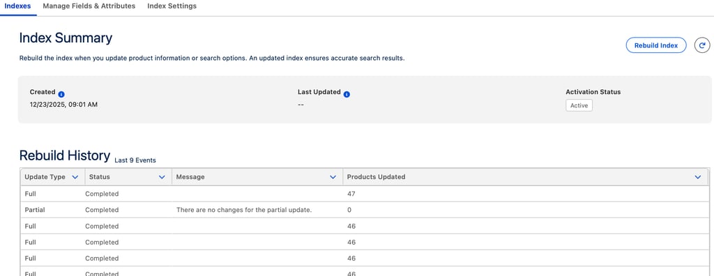 Index and Search Configuration in Salesforce Revenue Cloud optimizes how products are discovered during selection and configuration. By indexing key product fields, attributes, and categories, Revenue Cloud enables fast, relevant search results even in large, complex catalogs. Proper search configuration improves user efficiency by allowing sellers to quickly locate eligible products based on keywords, filters, and attribute values, while respecting catalog visibility rules and qualification constraints.