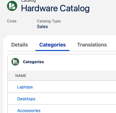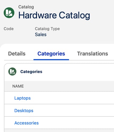 A Product Catalog is a curated collection of the products your company offers, organized to make discovery and navigation easy. Within a catalog, products are further structured into categories and subcategories, providing a logical hierarchy that helps users quickly find and select the right products for quotes, orders, and transactions.